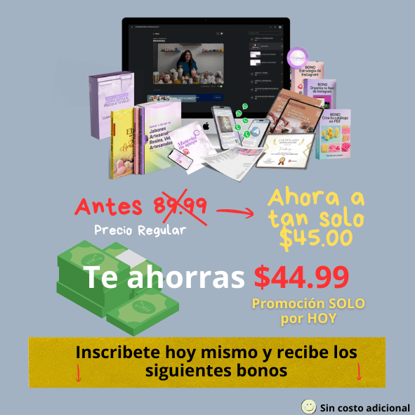 Si Tomas Acción en los Próximos 5 minutos HOY OBTIENES este SUPER PRECIO de 45 DOLARES, para que no pagues los $ 89.99 que vale este Curso y pagues tan SOLO $ 45.00 Dólares que pagarás en tu moneda local.